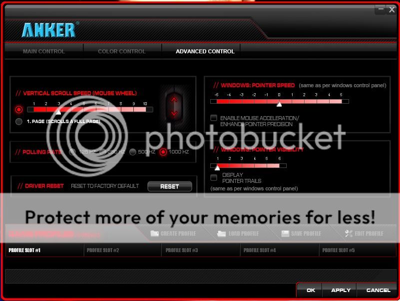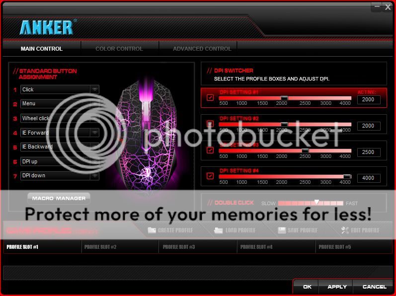 theres also up to 5 gaming profiles which can also be stored with the added options of macros, this is a sweet little addition that really sets the software appart from other budget orientated mice.