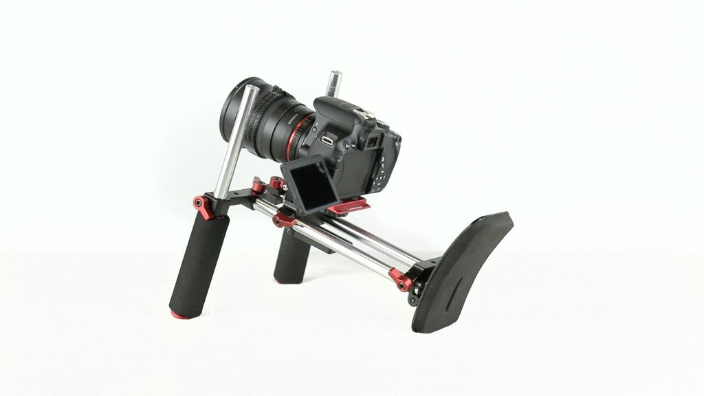 If you plan to shoot handheld for long periods of time, you may want a shoulder rig instead of just a pistol grip. The best value for money is the $260 Photography & Cinema shoulder rig, which can be reconfigured as a smaller, less obtrusive rig like this: