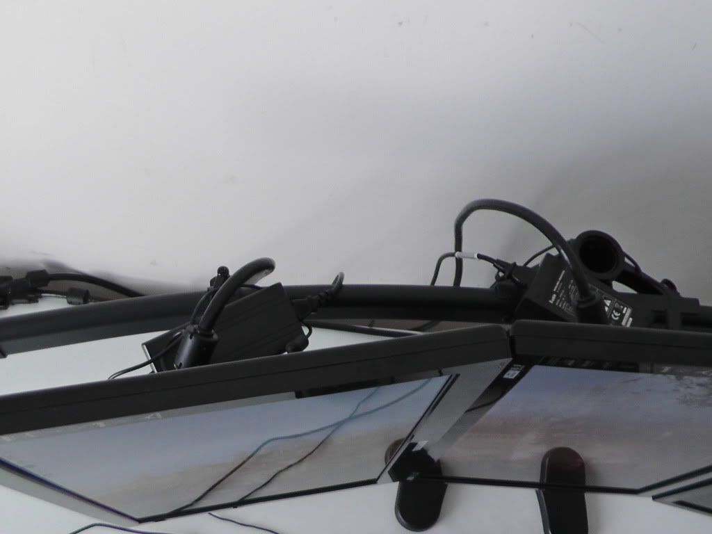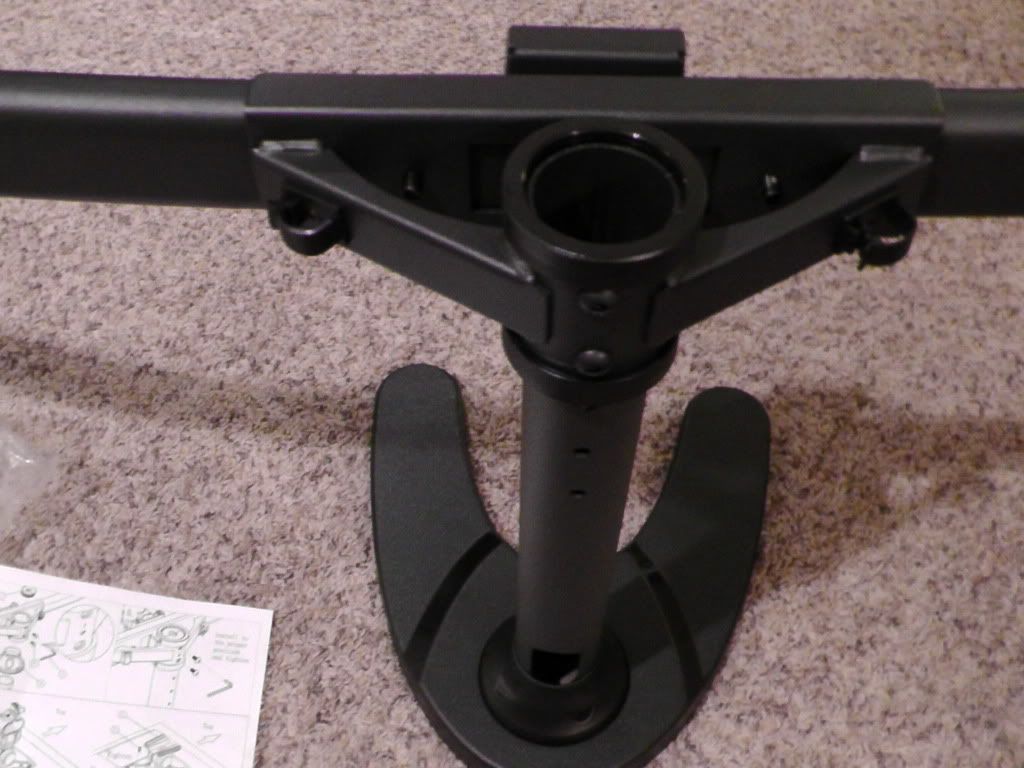 First off, the build quality of this mount is solid! The base of the mount is really sturdy and well made. The mount itself seems to be powder coasted of some sort. It comes with an adjustable pole (for the height of the monitors) which attaches to the base and the arm is assembled with 3 pieces. Adjusting the mount and monitors is very easy for rotating, pivoting, and side to side with a lever locking mechanism. Also, one neat feature I like about this mount, is the cut-out in the pole for your cables!