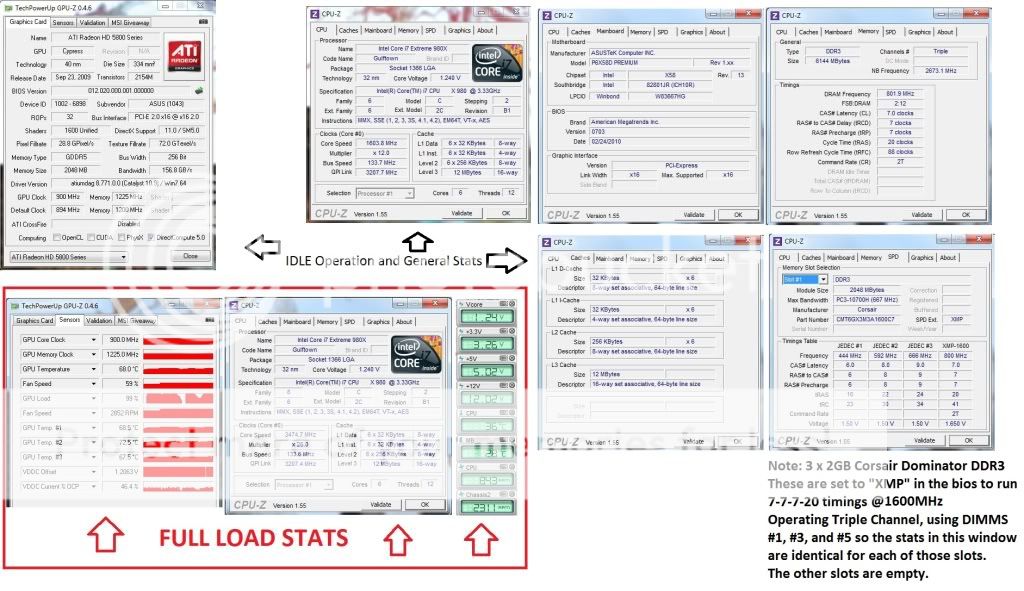DRAM: 3 x 2GB Corsair Dominator (stock XMP enabled 7-7-7-20/1600) with fans