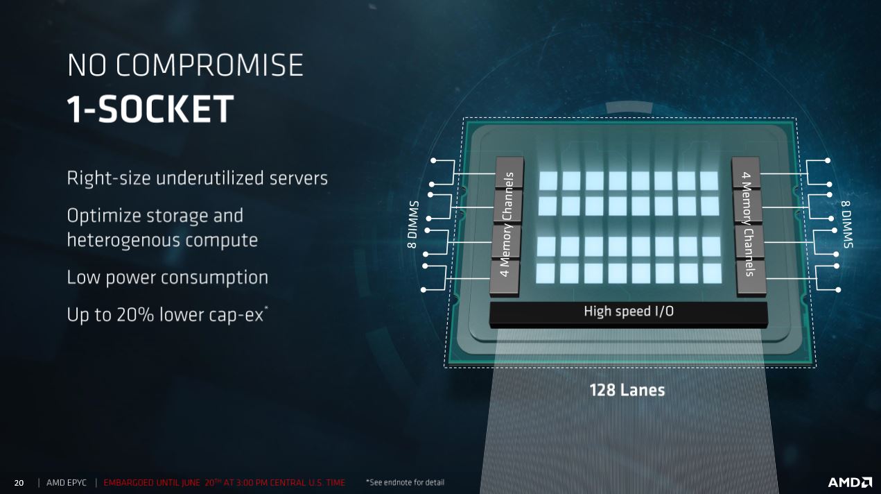 Roughly 25% of today's server platforms, which are almost entirely powered by Intel, ship with only one socket populated. That means they have only one processor, so there are a number of redundant components on the motherboard and in the chassis that aren't needed. Eliminating these redundancies reduces costs on multiple axes, possibly making a dedicated single-socket server a data center architects' best friend.