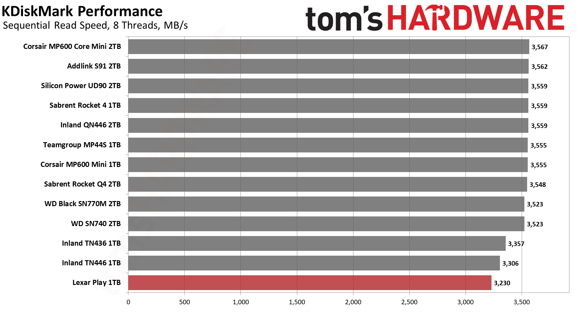 The Lexar Play is an interesting alternative in this growing market of shorter drives, which is great for everyone. We expect this market to grow even wider over time. The Play is priced right where it should be, and would be an excellent alternative to any of the other 1TB TLC-based SSDs currently available. Its power efficiency is within a good range and its performance characteristics make it snappy where it matters. It’s short and sweet, targeting a popular capacity — using a different controller — without incurring any serious drawbacks. We can recommend it.