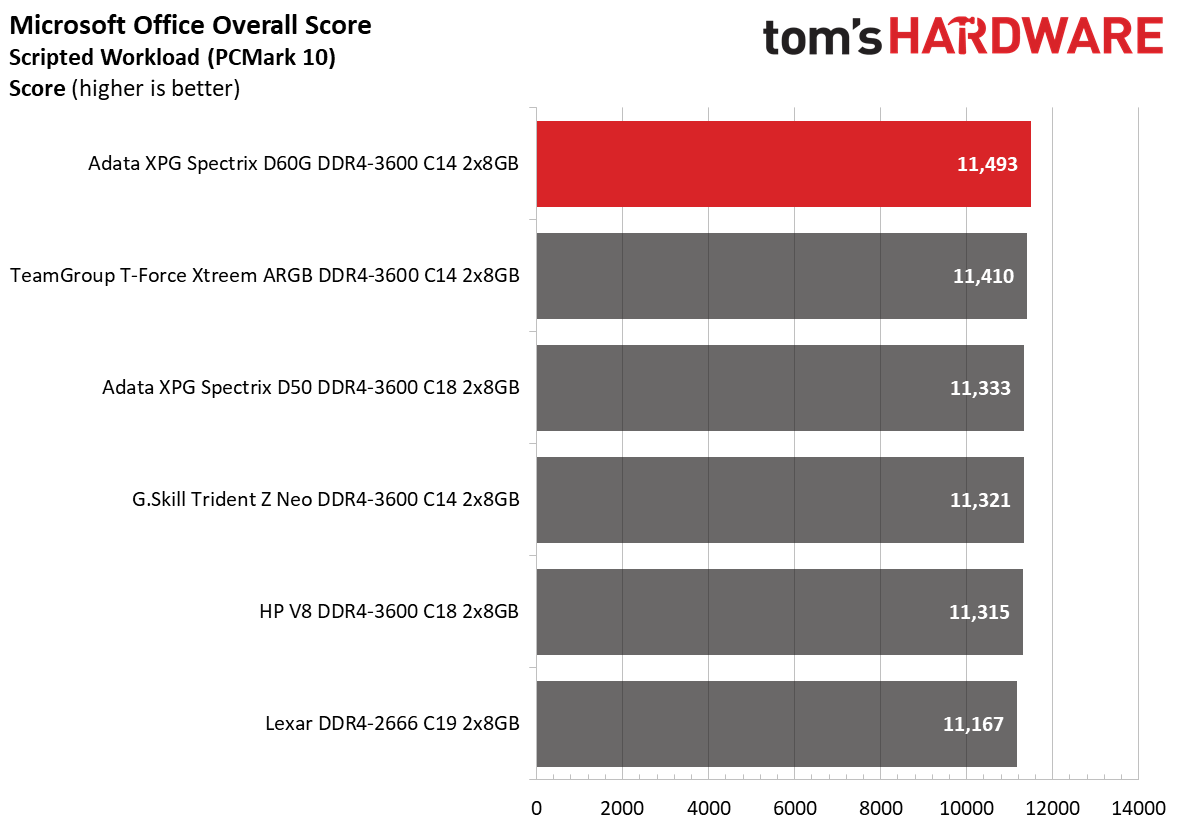 The XPG Spectrix D60G DDR4-3600 C14 memory kit proved to be the best performer in our gaming tests on both Intel and AMD platforms. The memory kit is no slouch in terms of general performance either, although the results show that the memory kit performs slightly better on Intel than on AMD. If you like tweaking, you'll be happy to know that Adata left some some overclocking headroom for you to play with.