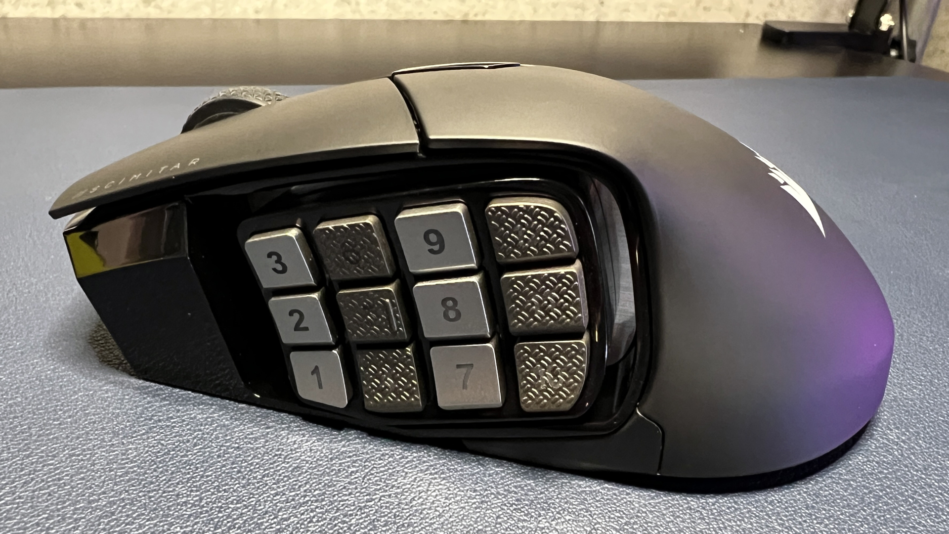 Other mice, such as the Naga V2 Pro, have angled side buttons that can usually be pressed (at least somewhat) from the top down instead of inward and slightly up, which is how my thumb moves to press the Scimitar Elite Wireless’ side buttons.