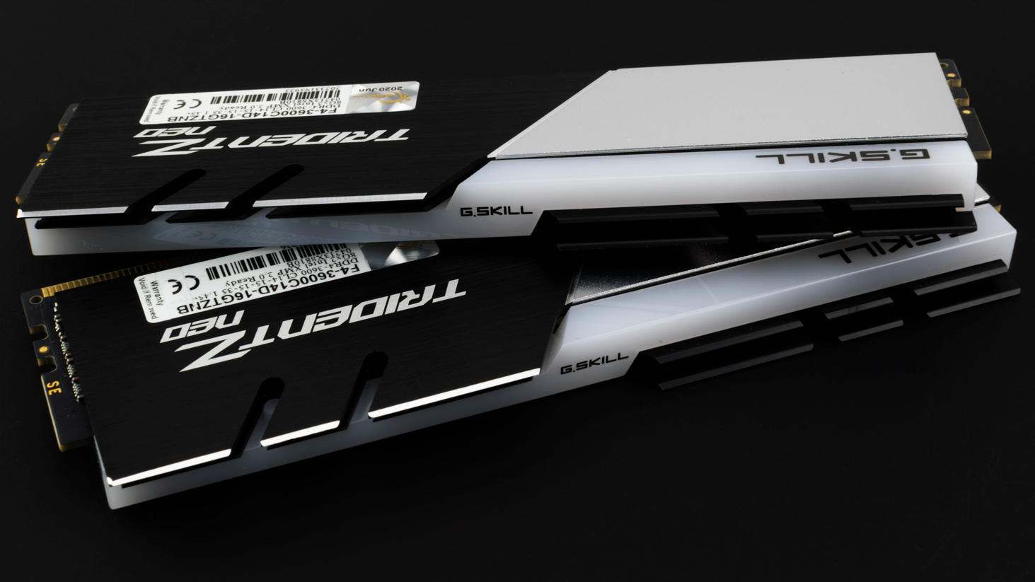 The Trident Z Neo series are a spinoff of G.Skill's Trident Z series, so it doesn't come as a shock that both series share similar aesthetics. G.Skill's characteristic tri-fin design returns once again, but the company revamped the heat spreader's color theme. Instead of a single solid color, the Trident Z Neo flexes a dual-toned combination where half of the heat spreader is dipped in silver to contrast the black portion of the heat spreader.