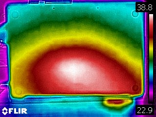 The center of the keyboard, between the G and H keys, measured 39.8 degrees Celsius (103.6 degrees Fahrenheit), which is warm but usable. The touchpad was much cooler, at 29.5 degrees Celsius (85.1 degrees Celsius).