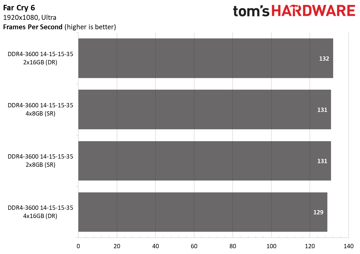 Memory ranks with DDR4 were irrelevant in gaming. As a result, we didn't record any significant performance differences between the four configurations that we tested.