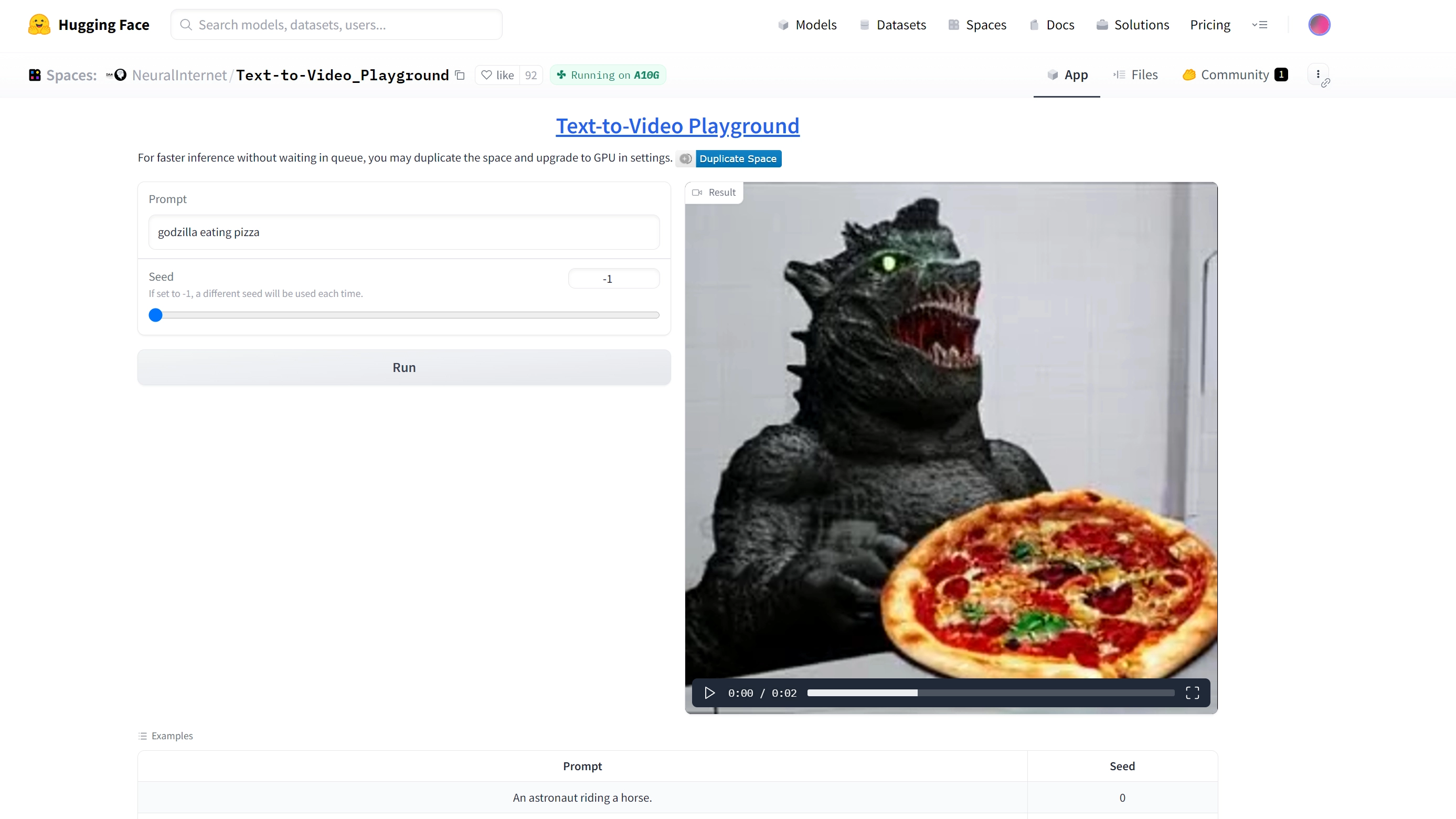 Fortunately, there is a completely free and easy-to-use tool on Hugging Face (the leading AI developer portal) called NeuralInternet Text-to-Video Playground, but it's limited to a mere two seconds, just about enough for an animated GIF. You don't even need to have a Hugging Face account to use it. Here's how.