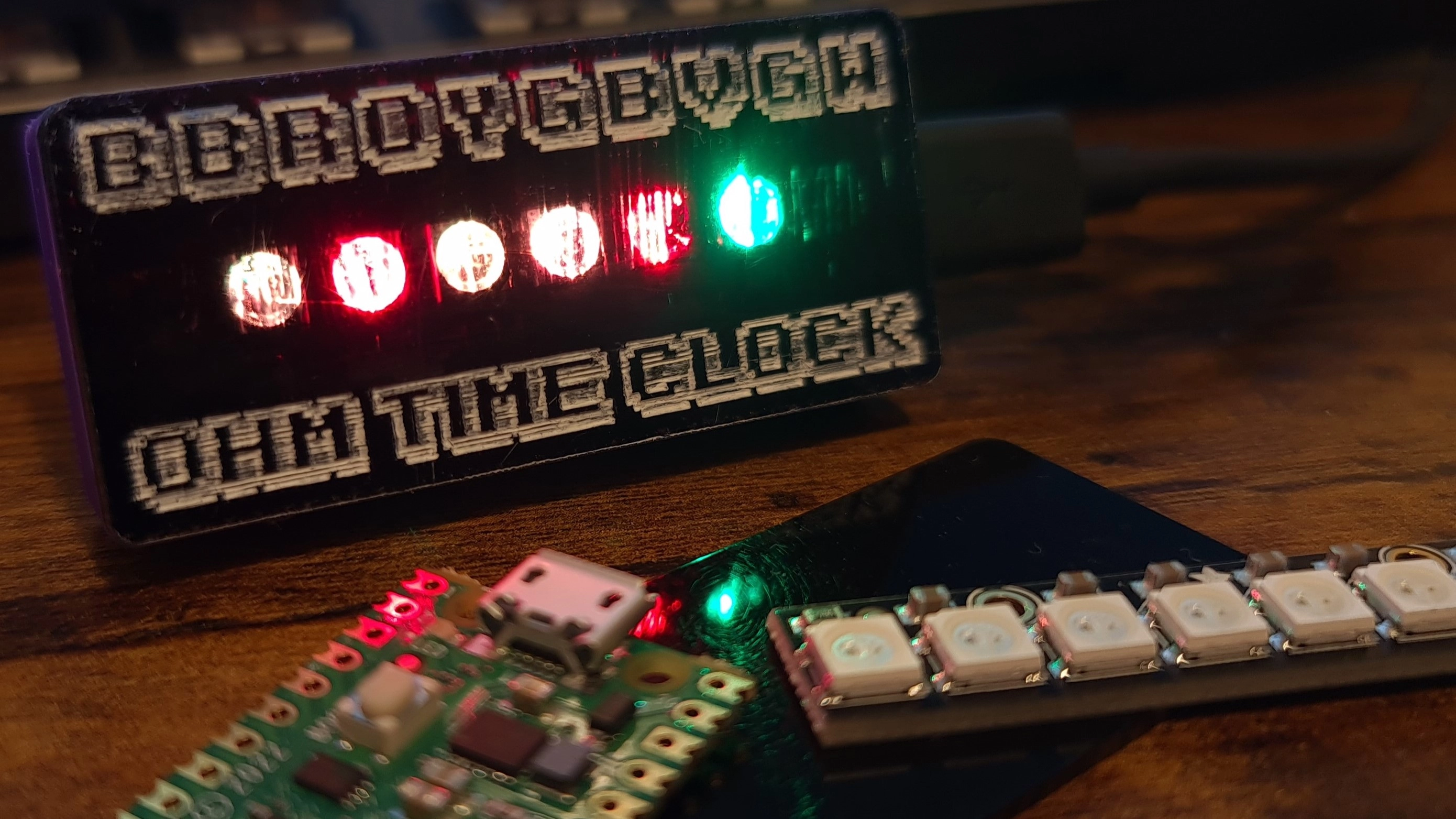 timestring = '{:0>2}{:0>2}{:0>2}'.format(ct[3], ct[4], ct[5])15. The timestring variable is now a string with the format “HHMMSS”. We iterate through this string to set the RGB values stored in the rc dictionary to the first 6 NeoPixels on the strip, then we write the changes to the NeoPixels. This is the end of the main loop, so we add a delay to ‘tick’ the clock and reduce the load on the Pico W.
