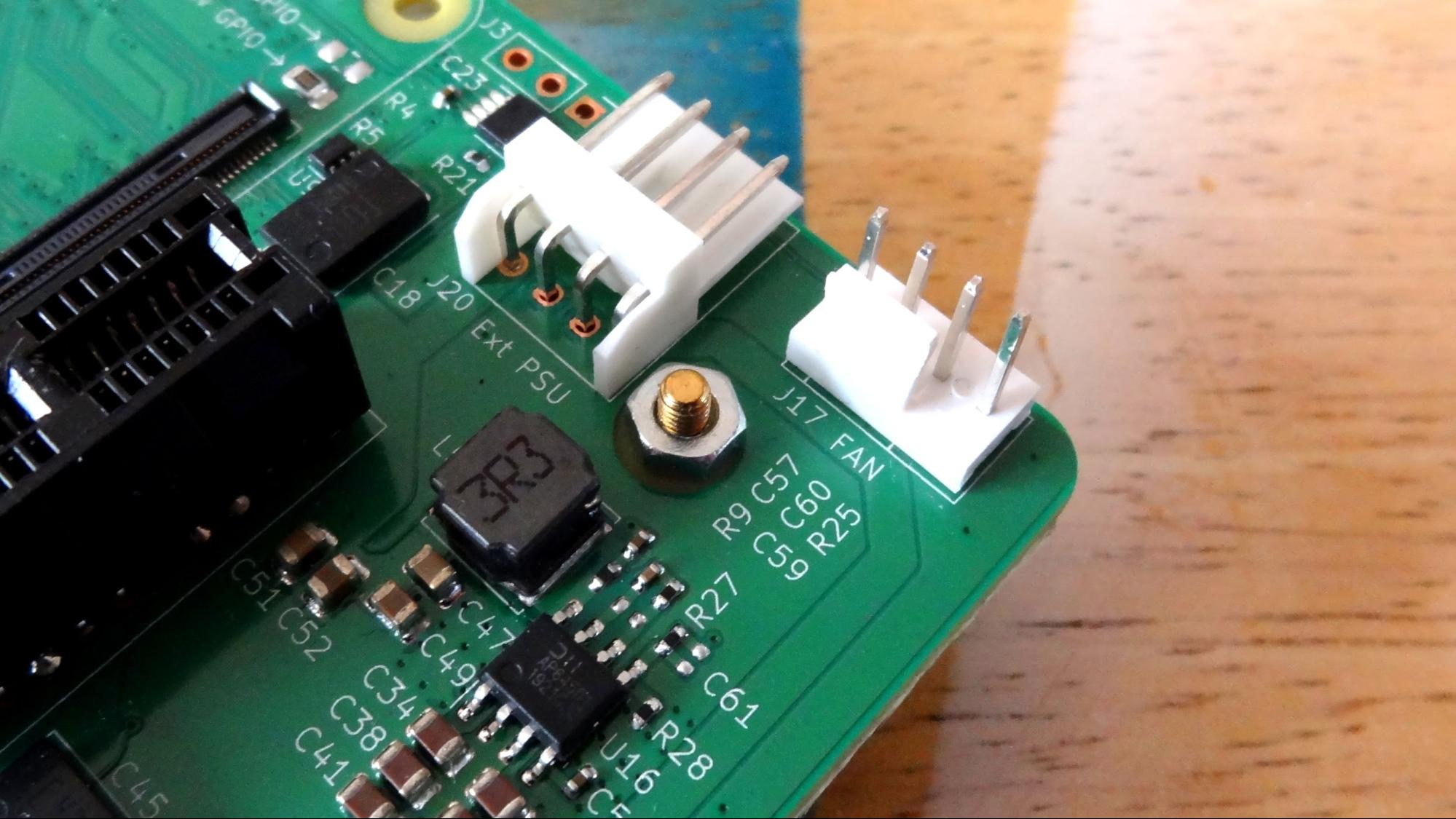 Before we even start the overclock process we will need to ensure that there is adequate cooling. For passive cooling you will need much more than some simple stick-on heatsinks. We chose to cool the Compute Module 4 with a Pimoroni Fan Shim, hacked to sit above the module and controlled from the GPIO. We also wrote a simple Python script to run on boot which started the fan at full speed. If you have access to, or a wish to use PC fans then the Compute Module 4 IO Board has a fan header at J17 which can be used with 12V PC fans.