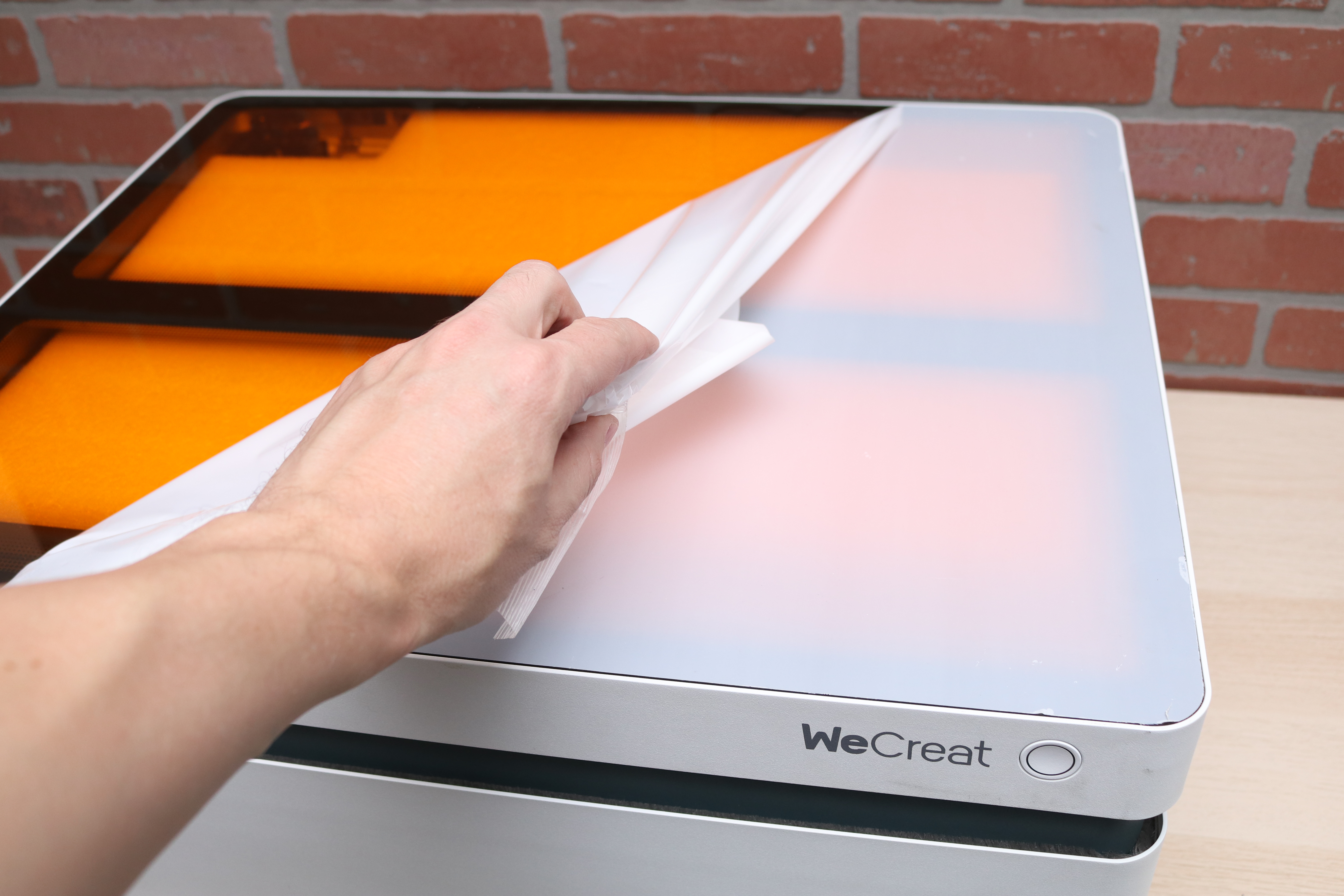 The safety lid on the Vision contains a single bar that runs the length of the unit which contains both an LED light bar as well as a 12-MP camera used to show the layout of parts on the platform before engraving. This bar is unobtrusive and sleek, and it’s easy to see the full workspace clearly due to the bright LED light bar.