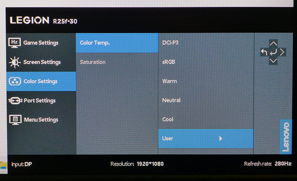 Lenovo Legion R25f-30 Calibration Settings