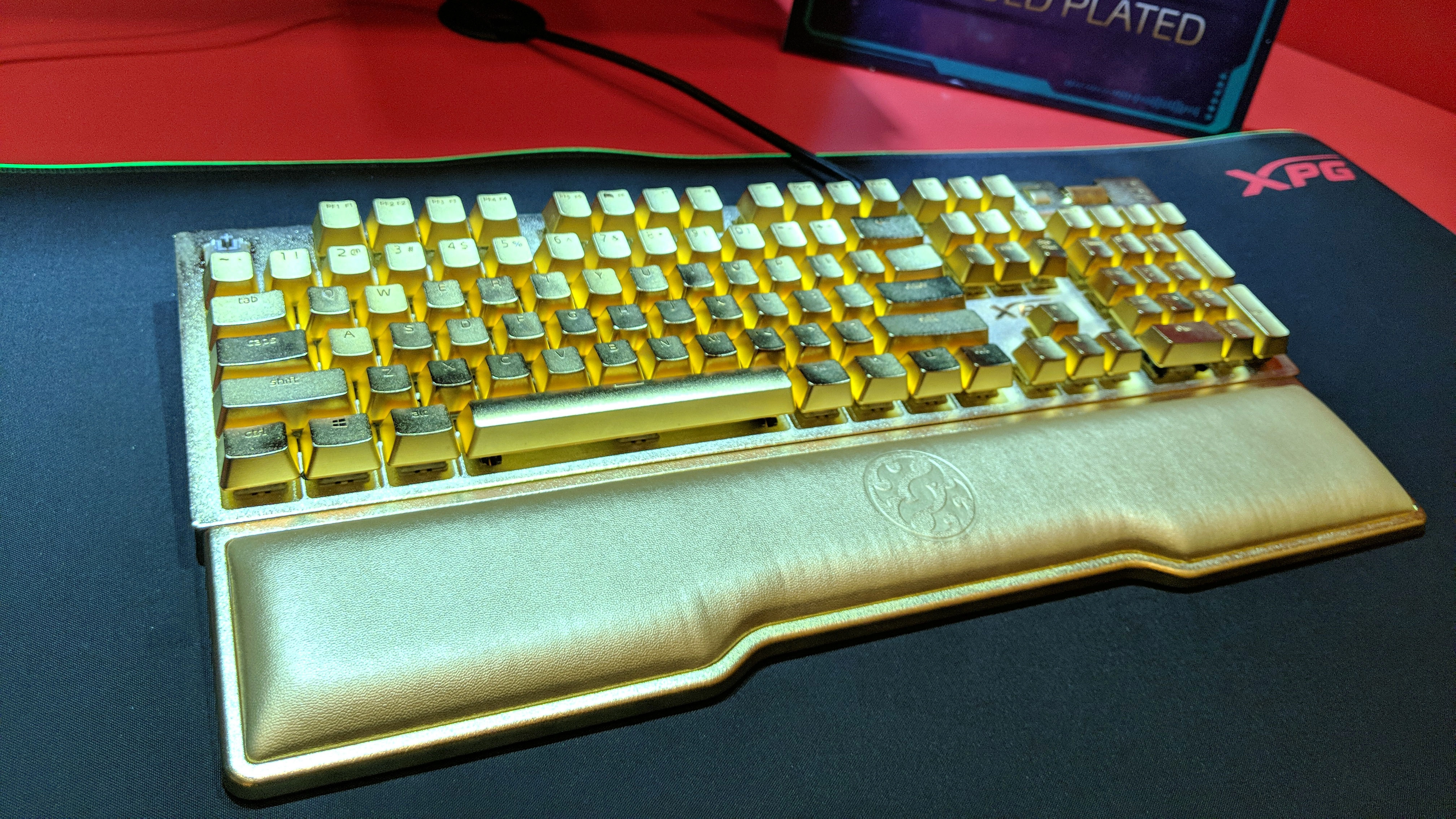 If James Bond Villain Auric Goldfinger were looking for the ultimate input device, he'd find it at Adata's CES suite. Here at the show, the company is showing off a version of its XPG Summoner gaming keyboard that has 24-karat gold plated key caps, along with a gold-plated base.