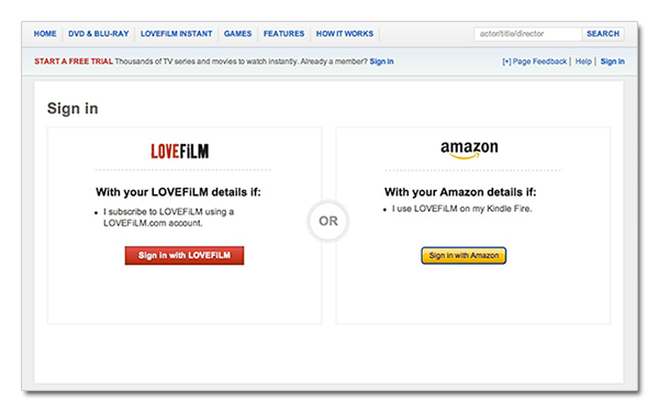 LoveFilm Letting Some Users Sign In with Amazon Profiles