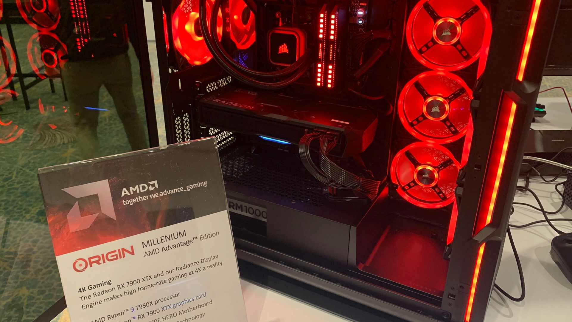 Origin PC's Millennium AMD Advantage Edition desktop will be one of the first such systems on the market, which our Jarred Walton caught on his camera in AMD's showroom. Indeed, the system comes with AMD's Radeon RX 7900 XTX graphics board, a liquid-cooled Ryzen 7 7950X processor, an Asus ROG Crosshair X670E Hero motherboard, and DDR5 AMD EXPO memory.