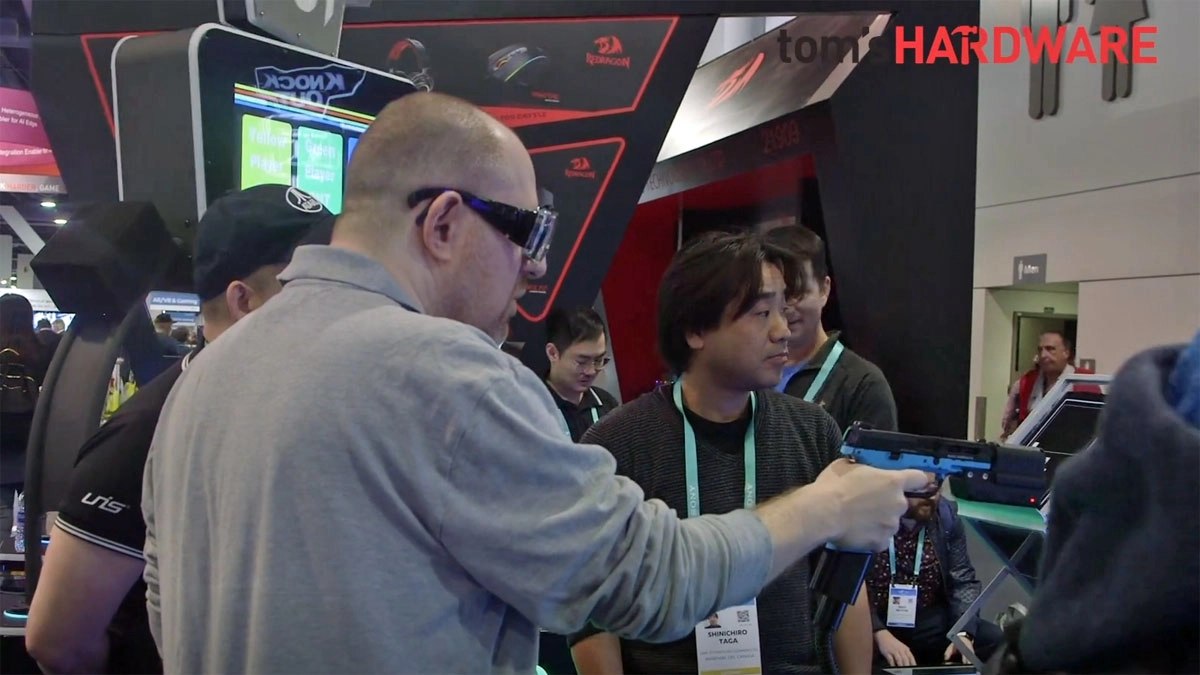 At CES, Unis showed off a four-player Pong game and a gun game with a real gun.