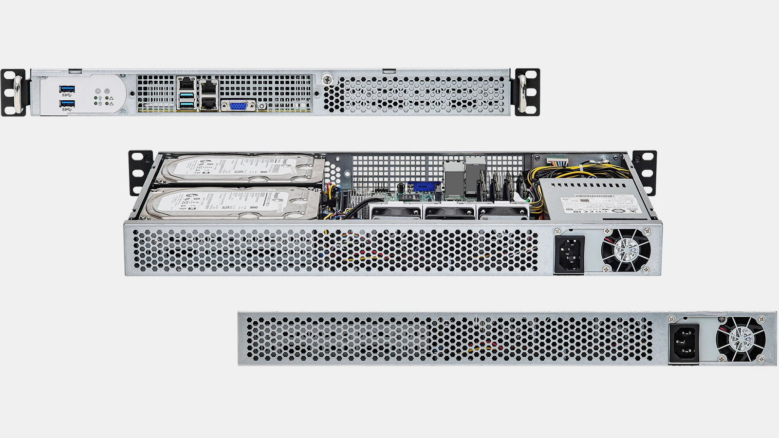 Article continues belowWhile the X570D4I-2T motherboard has a PCIe 4.0 x16 slot for graphics cards, the 1U2-X570/2T machine cannot accommodate any add-in cards since this is a short depth machine. Furthermore, its 265W power supply is not really designed to handle decent graphics cards or special-purpose accelerators that typically consume well over 100W.