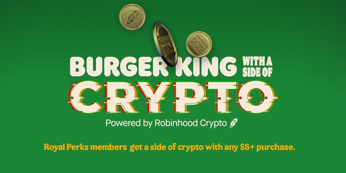 Burger King today announced a partnership with investment platform Robinhood, marketed as "Burger King with a Side of Crypto". The campaign will see Burger King customers that subscribe to its Royal Perks premium service receive chances to win up to 1 unit of either Bitcoin ($61,848 at time of writing), Ethereum ($4,355) or Dogecoin ($0.2758). The deal will be available from today through November 21st - or while crypto supplies last.