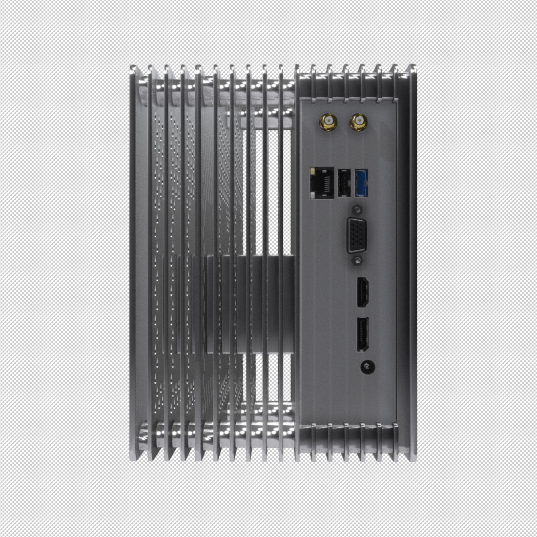 The 35W model measures 7 x 7.7 x 4.3 inches (178 × 195 × 108mm) and weighs 7.1 pounds (3.2kg). The 65W model's dimensions and weight are 7 x 7.7 x 5.5 inches and 9.3 pounds. The manufacturer describes the Incus A300 as having a passive aluminium housing with copper cores. The PC case's aluminum fins act like a passive heatsink and transfer heat away from the processor.