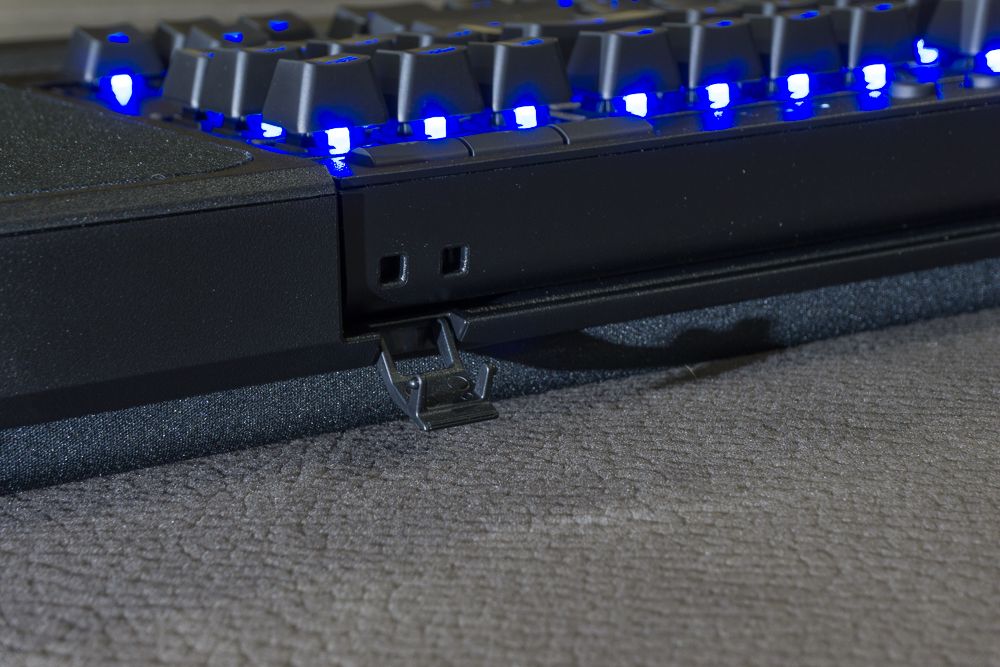 The mouse pad is replaceable, which is important given its cloth surface. Sugary spills, which can be tough to remove from fabric, and long term wear would have been a hassle for users if the pad were fixed in place. Slosh of soda? New Lapboard. Fraying edges? New Lapboard. The mouse pad is affixed using adhesive backing, so replacement shouldn’t involve more than a peel-clean-stick process. (The replacement mouse pad isn’t available at press time, though, so don’t spill anything quite yet. We’ve asked Corsair for a timeline on availability and other pertinent details. Corsair plans to release the pads sometime this year.)