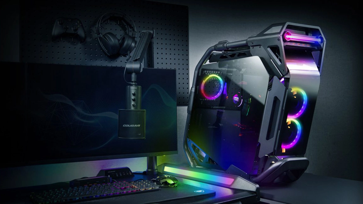 In many regards, Cougar's Cratus is very similar to its other exotic designs, such as the Conqueror, but the new case features a different design language. The most conspicuous part of the case is its tubular construction - paired to metal supports and finished in a dark metallic color, which gives the case its muscle car vibe.