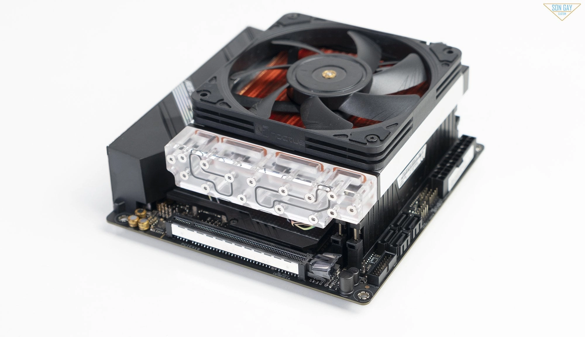 Sơn Gầy hasn't said anything about thermal performance yet, nor anything about noise levels. We know that the Noctua spinner he used, the NF-A12x15 PWM Chromax.Black, isn't very loud with a maximum noise rating of 23.9 dBA.