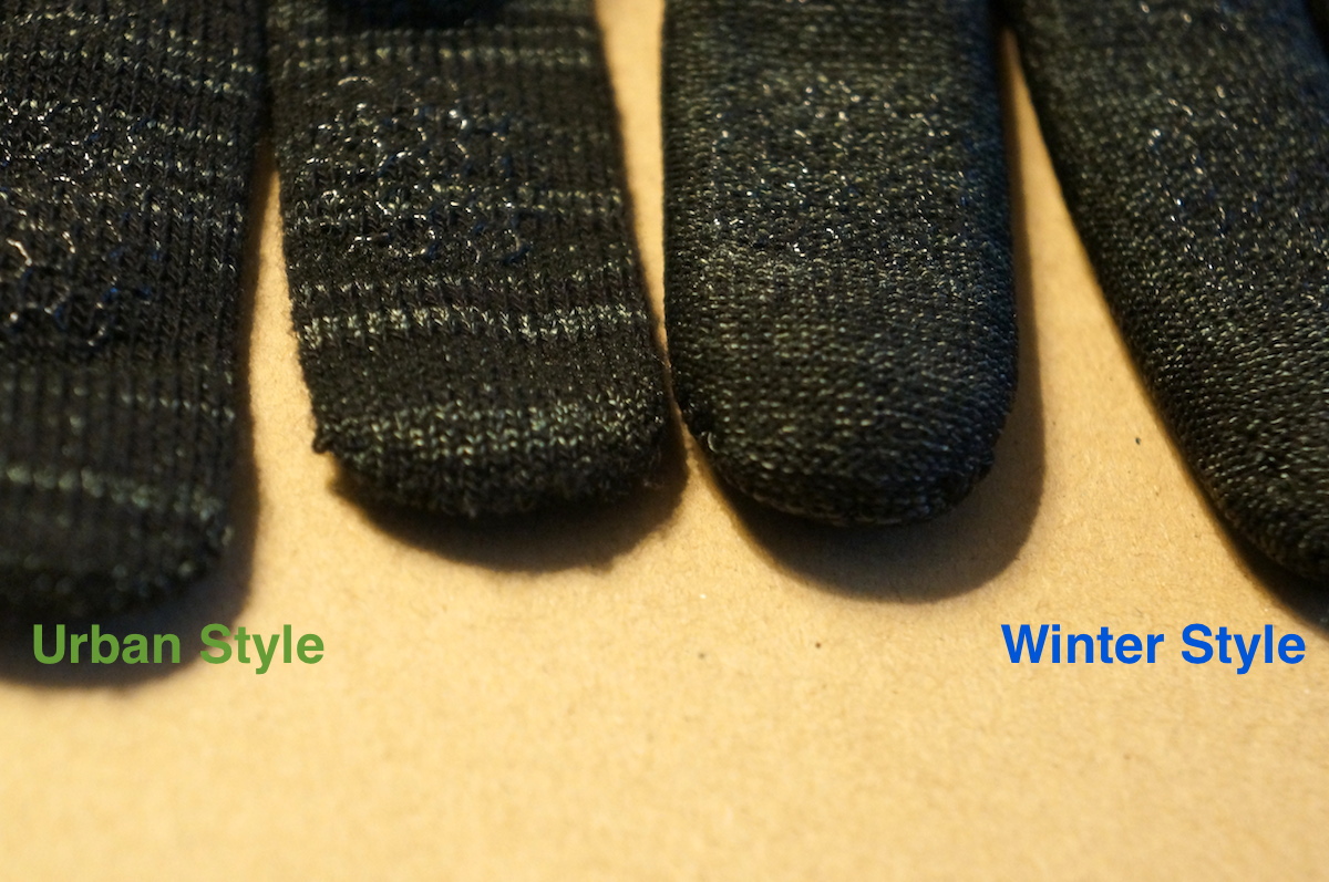 Those in colder climates will like to know that the urban GliderGloves are slightly warmer than the basic models since they are composed of three layers: the outer layer is made up of the specific blend of yarns and conductive copper material. The middle layer is a protective "plaited" layer made up of materials like nylon and acrylic. The third and inside layer is a soft brushed acrylic with give the inside a fuzzy, fleecy feel.