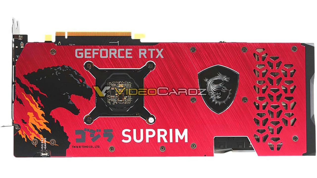 Named the MSI GeForce RTX 3070 SUPRIM SE x GODZILLA, this new card is part of this generation's premium line. It features what’s probably the latest RTX 3070 LHR chip, right now details are scarce, but whatever’s humming beneath the casing, we know it runs at up to 1785 MHz in Extreme Performance mode, with a default clock of 1770 MHz and as it is a Lite Hash Rate card, don't expect to be mining monstrous amounts of cryptocurrency.