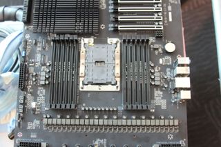 It certainly wasn't a garden-variety chiller, though. The industrial one-horsepower Hailea HC-1000B can pull a peak of 1000W alone, which is a shocking amount of cooling power for a processor that Intel positioned (by omission) as a chip coming to market at 5GHz. We also learned that the test system required a 1300W power supply, so total system power draw for the demo could stretch up to 2300W. In fact, the hideous amount of juice required to power the demo system prevented our contacts from showing us the performance demo privately: The area we were in simply didn't have enough dedicated circuits for the task.