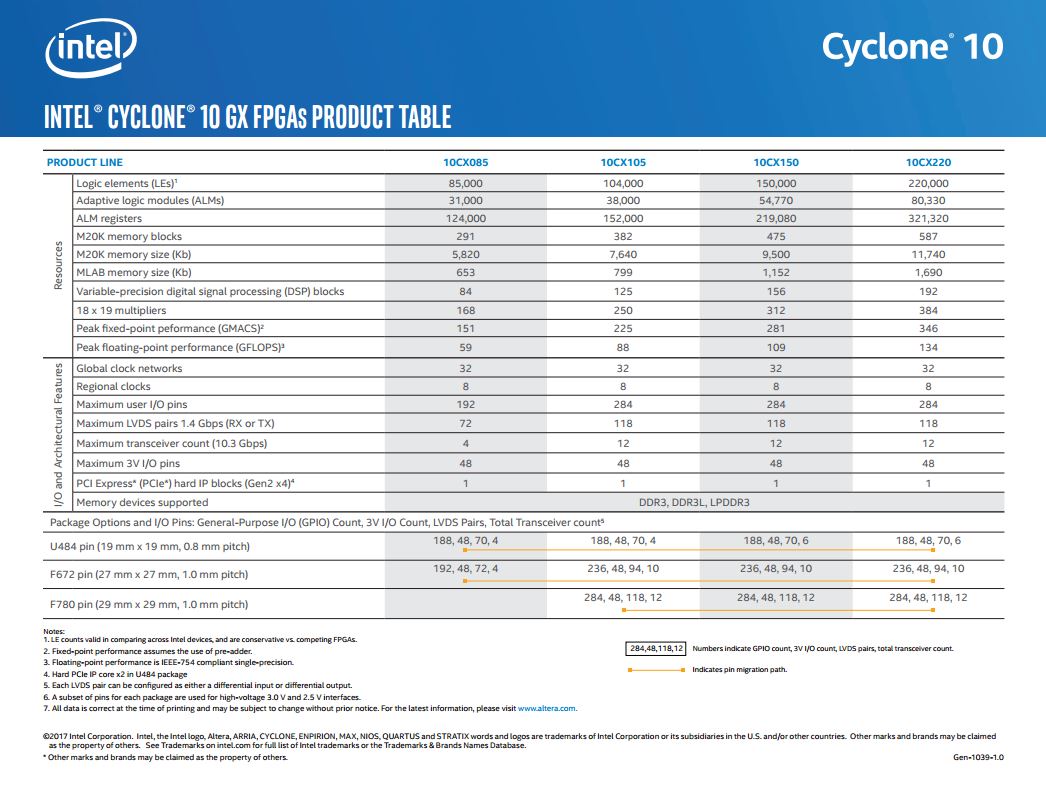 Cyclone 10 GX FPGAs are built on a high-performance 20 nm processCyclone 10 LP FPGAs are built on a power-optimized 60 nm process -