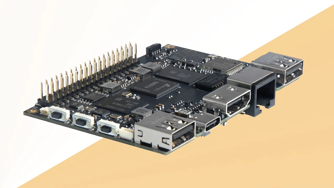 Article continues belowThere's also a 30-pin FPC connector on the underside of the board, plus both embedded eMMC flash and a Micro-SD card for storage. A full-size HDMI 2.1 port can be seen in the images released. The board measures just 82mm x 58mm (3.2in x 2.2in), making it roughly the same size as a Raspberry Pi 4.