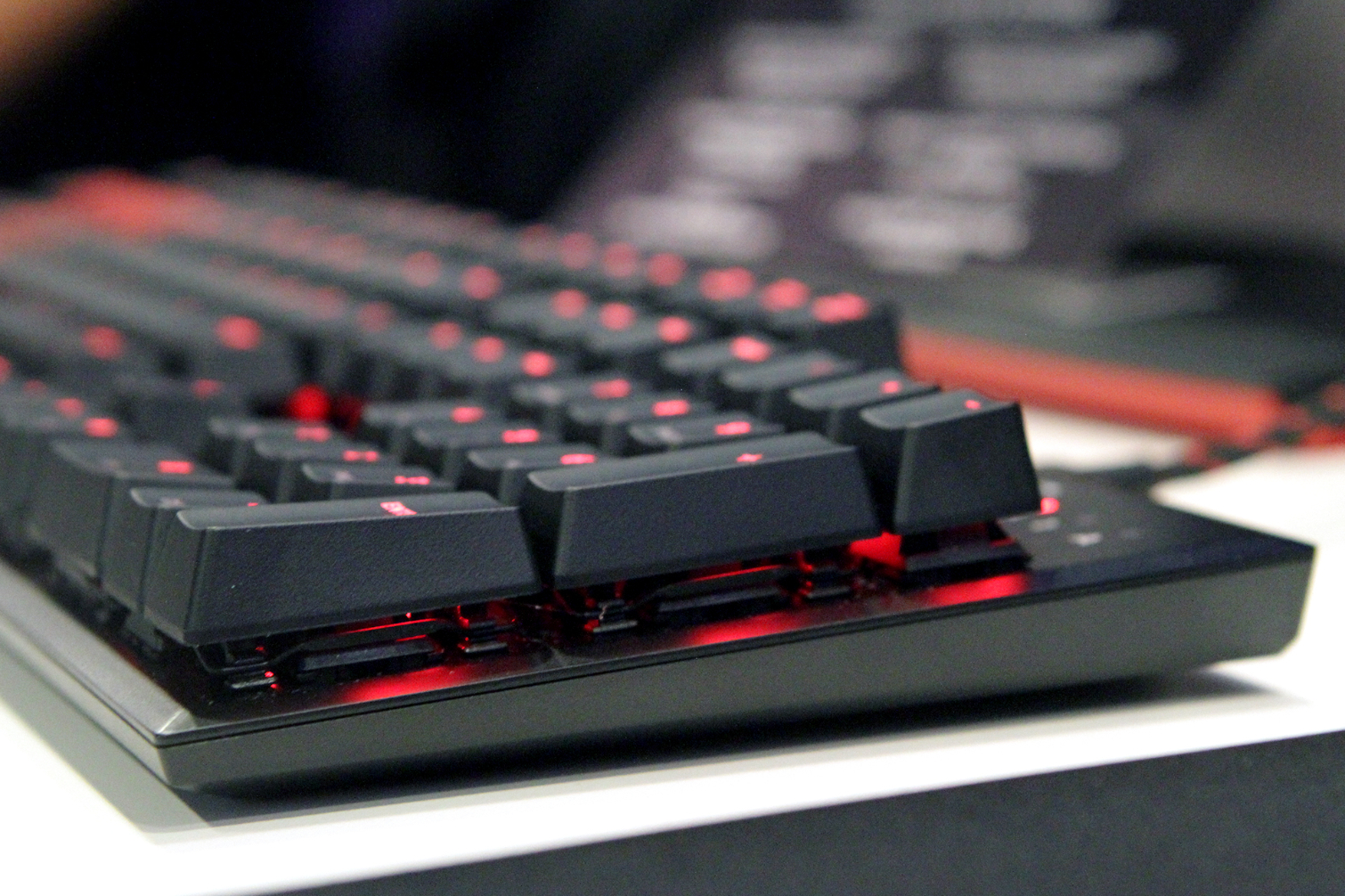 The HyperX Alloy FPS is a safe but solid and carefully-designed product. Kingston kept it fairly simple: It’s a slim device with plate-mounted switches, red backlighting and no software. The first run will feature Cherry MX Blue switches and Costar stabilizers, and the top panel is an aluminum alloy.