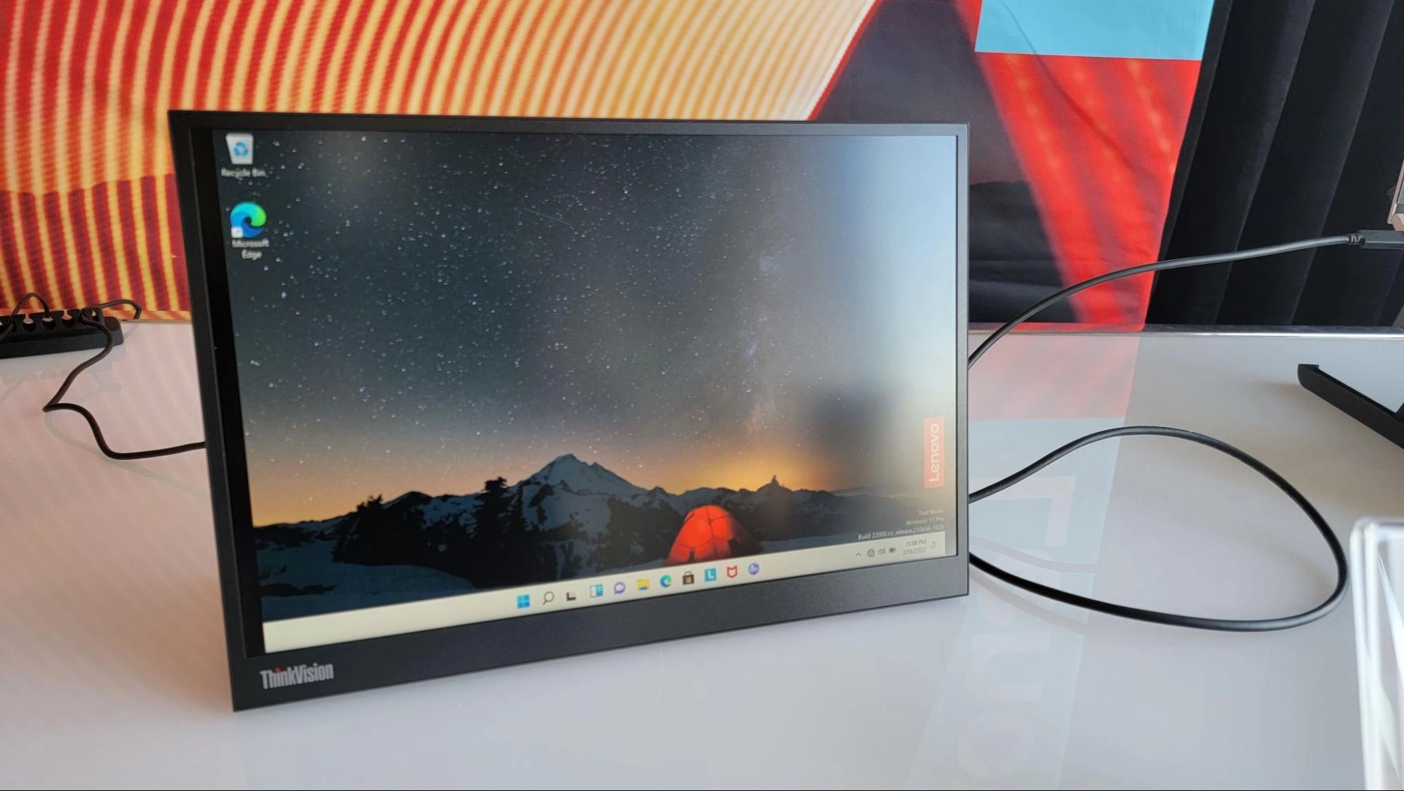 The ThinkVision M14d’s mobile-centric vibes extend to the physical form factor, which is unchanged from previous versions of the ThinkVision M14 series. The monitor is just 4.6mm thick and weighs 1.3 pounds. It also features a built-in stand that allows you to adjust the angle of the screen to your liking (0 degrees to 90 degrees).