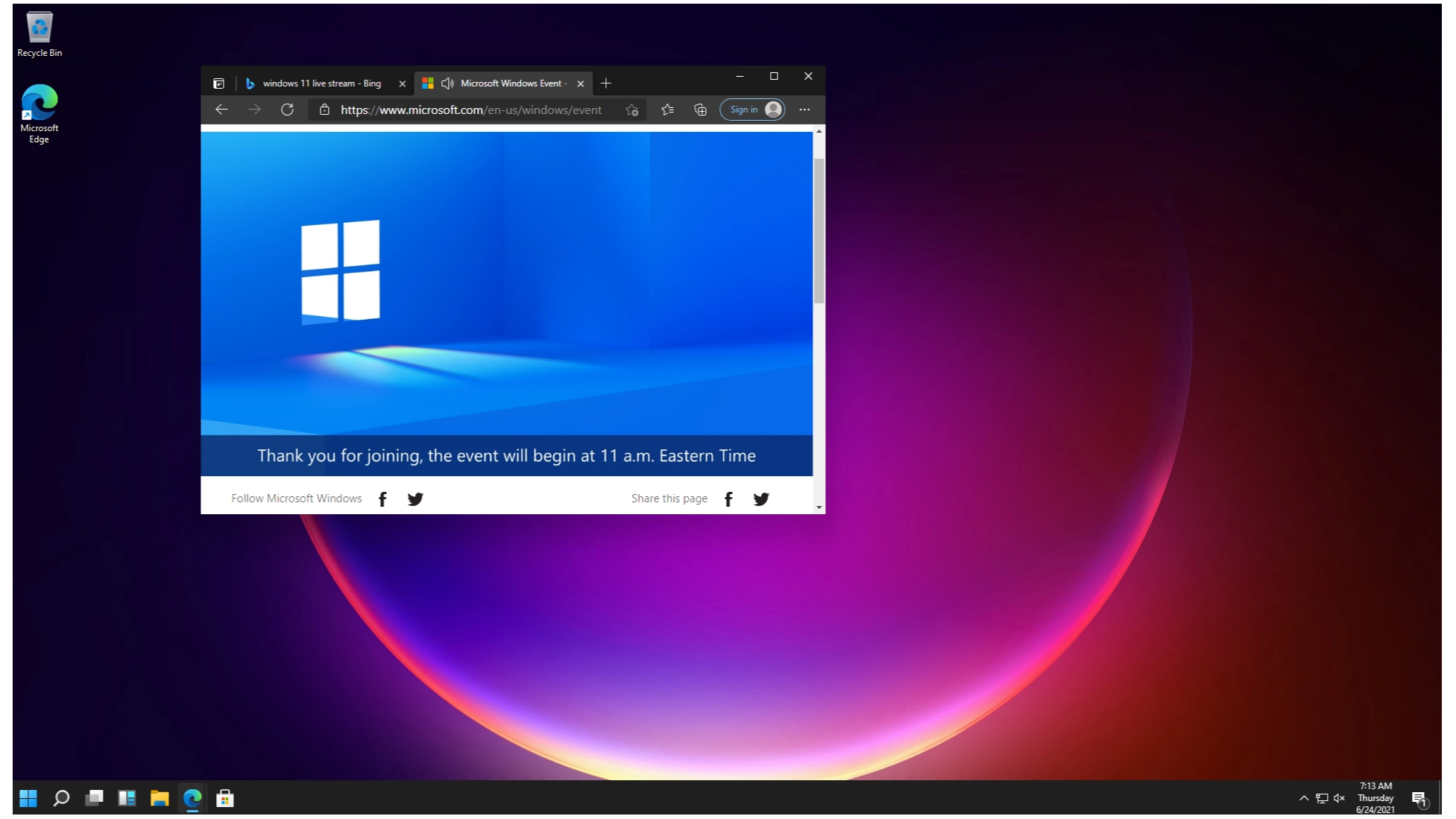 It's 45 minutes before start time and we're excited to see what Microsoft has to say. Last week, a version of Windows 11 leaked, complete with a new Start Menu and some minor UI changes. We hope that Microsoft will show something more than we've seen from the leaked build which, frankly, was really underwhelming.