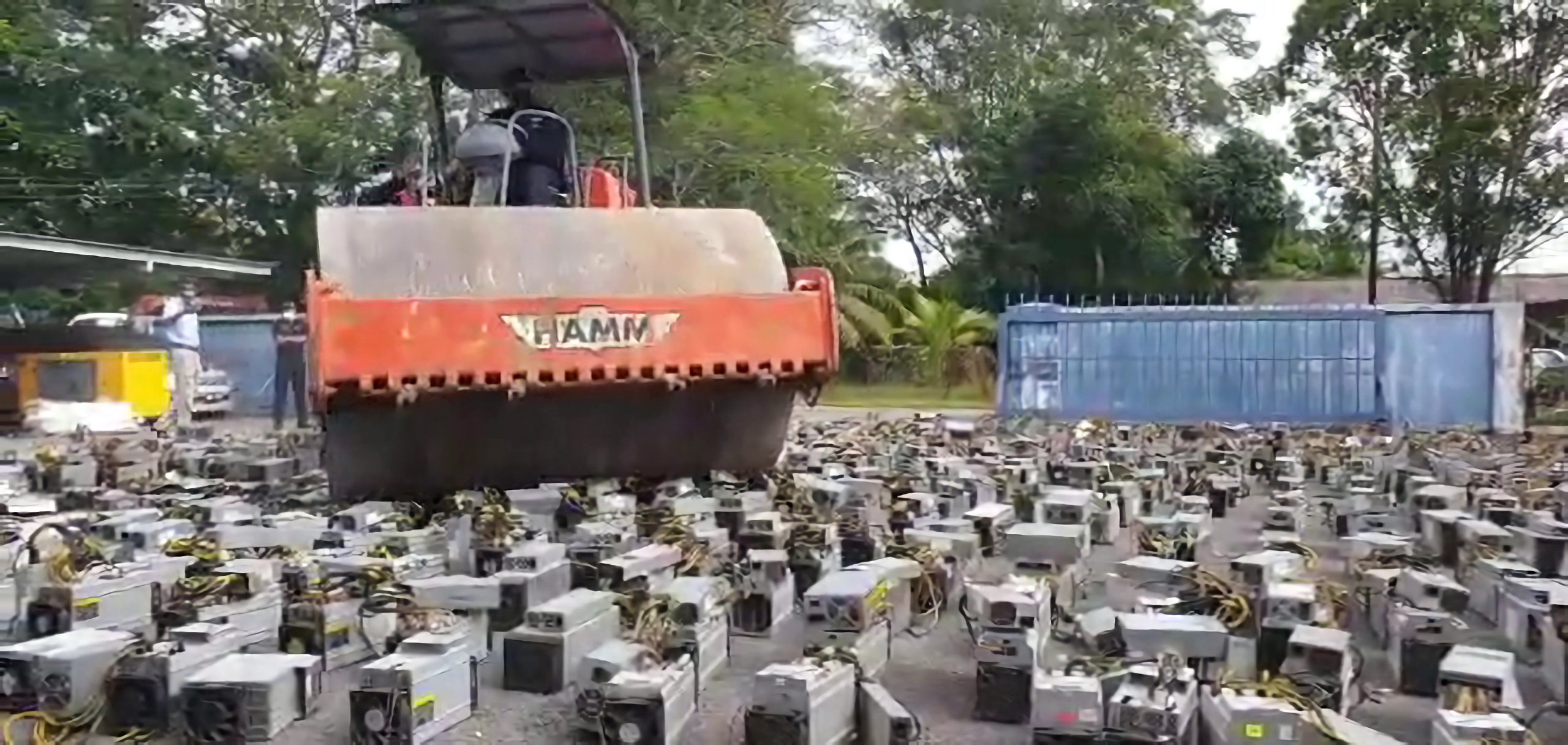 We've heard of police arresting cryptocurrency miners for stealing electricity before. We've also covered the Chinese government shutting down mining operations entirely and encouraging other people to report suspected miners to the authorities. But this is the first we've heard of police destroying mining rigs with a steamroller.