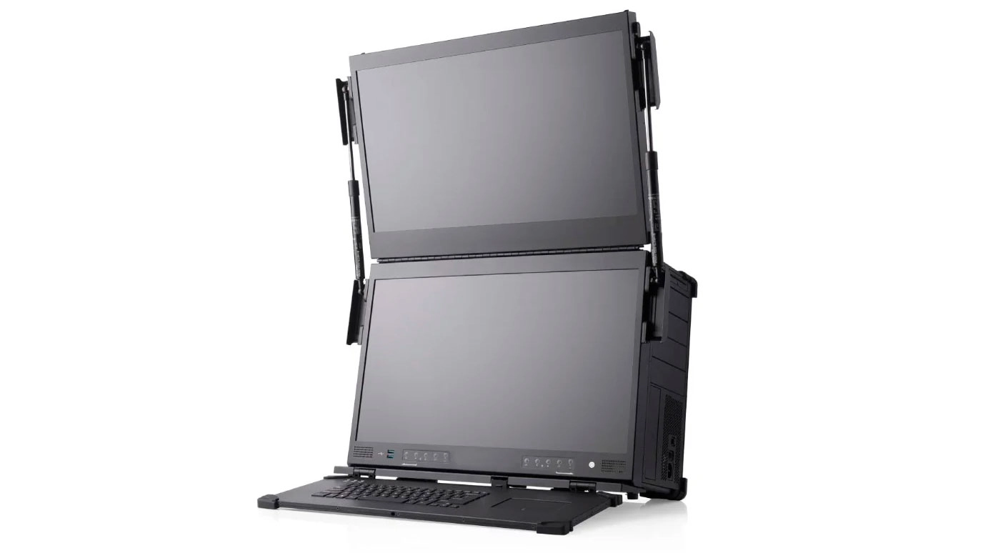 Technically, the a-X2P could be a laptop, although most would consider it a pluggable or portable PC. Regarding aesthetics, Mediaworkstations stuck with the same design as the previous a-X2P. However, the 2023 model put on some weight, so it's a bit chubbier than the prior installment. The mobile workstation now measures 16.35 x 24.6 x 10.6 inches instead of the preceding version's footprint of 15.10 x 23.10 x 9.03 inches. The upgraded model also weighs 45 to 55 lbs, up to 13% heavier than the old one.