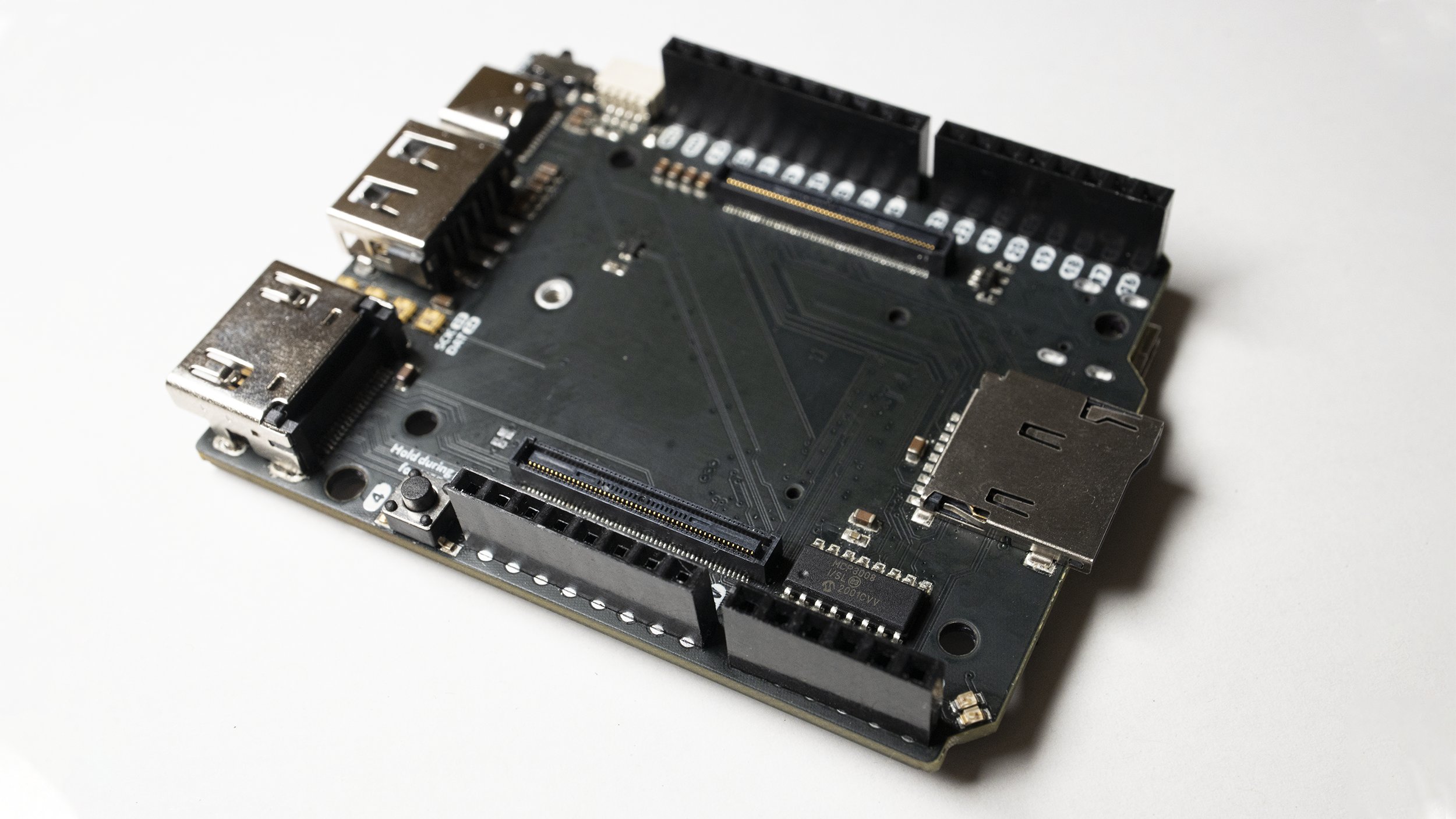 The most interesting part of this board is on the underside. Flipping Piunora over, we see an M.2 PCIe interface enabling the use of super-fast NVMe storage or the use of add-ons such as Google's Coral Tensor Processing Unit. Extra fun features include four APA102 RGB LEDs, which can be controlled using Adafruit's CircuitPython Python library.