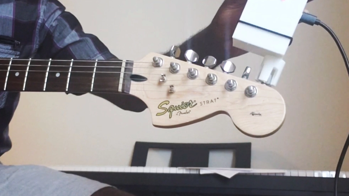 The project design is inspired by the Roadie 3 automatic tuner from Band Industries. However, Jean-Gilles’s creation is housed inside a custom, 3D-printed shell and is built from scratch for a more affordable end product.