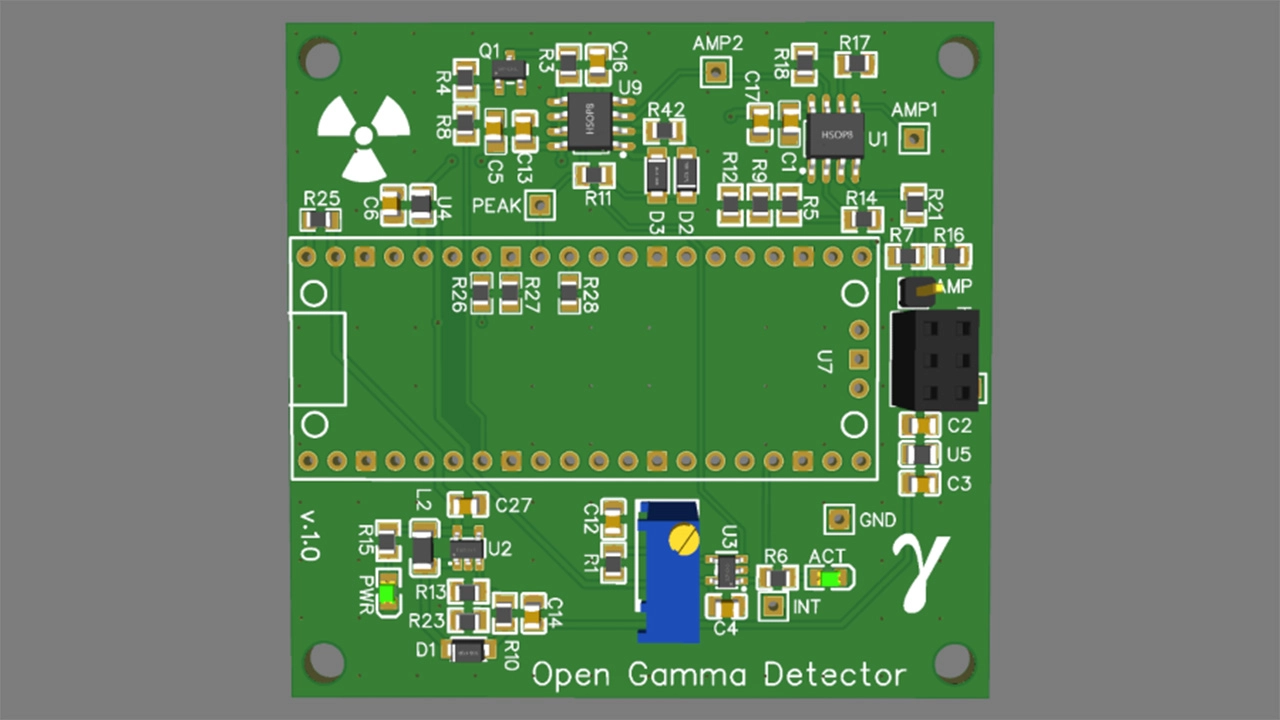 Known as the Open Gamma Detector, the aim behind the project is to keep the price down, as the devices can cost over $1,000 if purchased from a lab supplier. Measuring just 6cm x 6cm (2.3in square), the custom detector PCB makes up most of the device’s area, as the Pico itself slots into it.