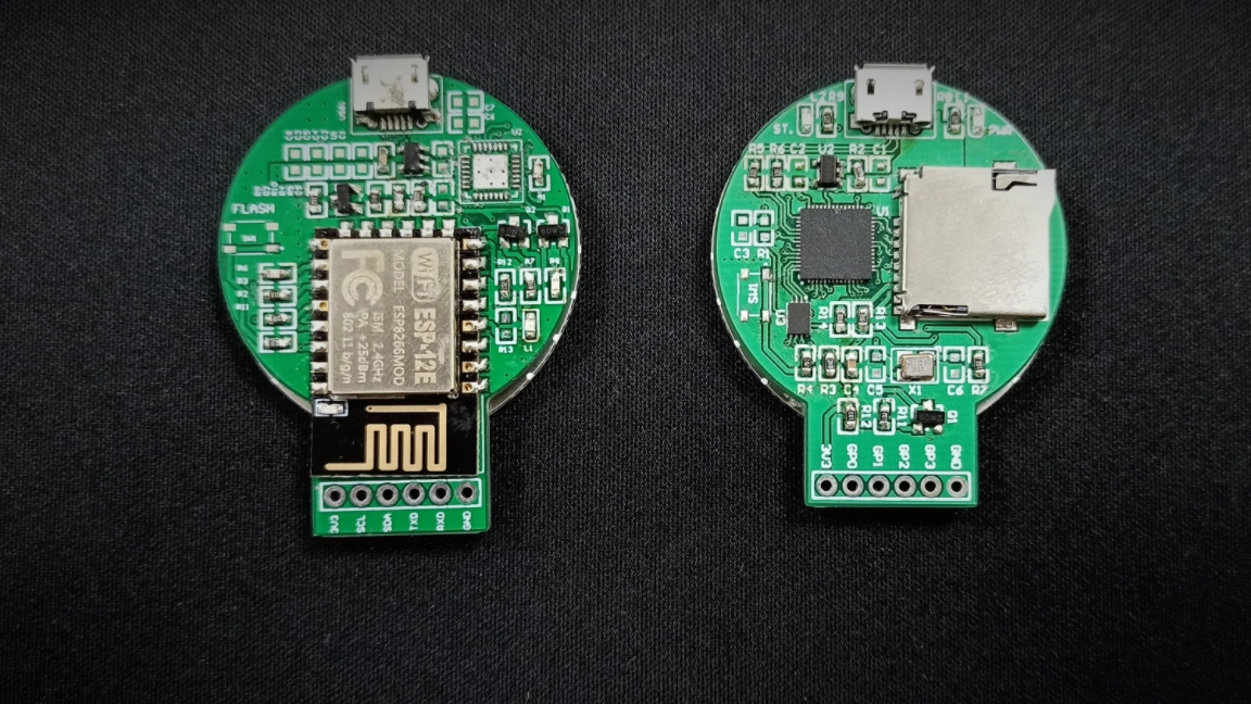 One of SB Components latest boards sees the Raspberry Pi Pico's RP2040 SoC soldered to a small breakout board which provides limited GPIO but brings a circular IPS display to the party. The other board appears to be an ESP12E (ESP8266 equivalent) providing Wi-Fi connectivity in the same package and with the same screen.