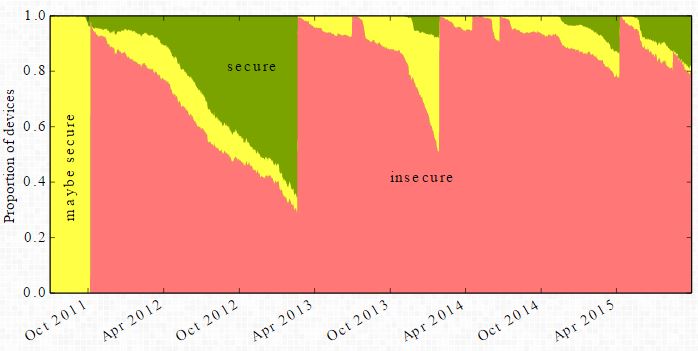 A group of Cambridge researchers discovered that as many as 87 percent of the existing Android devices on the market are exposed to at least one of 11 bugs that were made public in the last five years. The researchers acquired the data by getting over 20,000 Android users to install their Device Analyzer app, which checks the phones for those vulnerabilities.