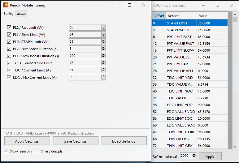 Reddit user kbsk1 has created a free program called "Renoir Mobile Tuning" (via Twitter), allowing users to manipulate power and thermal parameters on Renoir Ryzen Mobile 4000 series CPUs. This is a great solution for Ryzen laptops owners who want to tweak their processors to extract the most performance or efficiency.