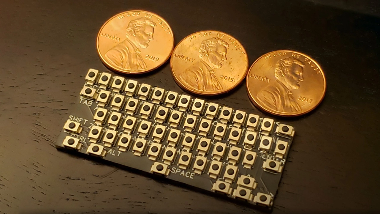 If you miss the days of pecking at a tiny keyboard then you are in luck. Hackaday member TEC.IST has produced what he claims is the tiniest ever keyboard using 59 microswitches, a custom PCB, and a Raspberry Pi Pico microcontroller board.
