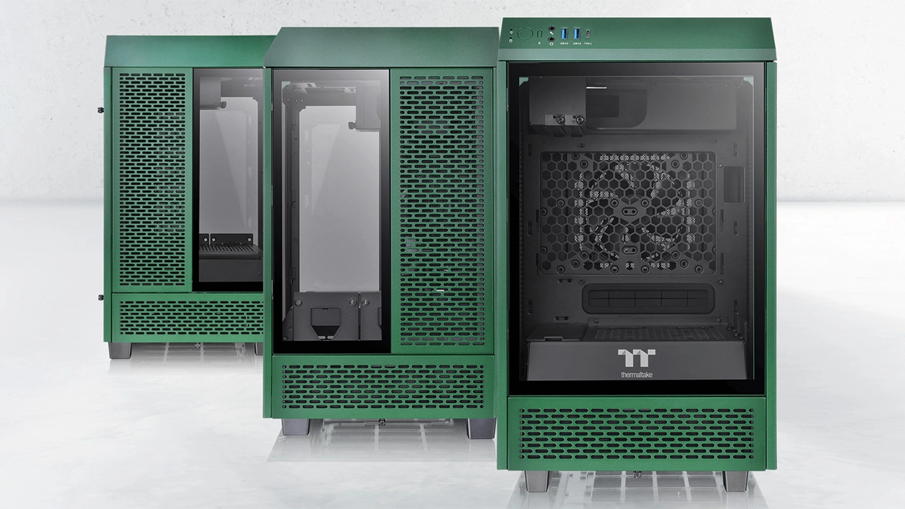 With Racing Green and Turquoise adding to the Snow and Black case colors, the Tower 100 looks a little less like a 3D printer. With dimensions of 18.2 x 10.5 x 10.5 inches (462.8 x 266 x 266mm), it’s quite a compact case but hardware compatibility looks to be decent. It’s able to cram in a graphics card 330mm long, while your CPU cooler can protrude 190mm from your chosen mini-ITX motherboard. On three sides of the case are 4mm tempered glass panels designed to show off your build. There are two pre-installed 120mm fans on the top and at the rear, and extras can be added on top of the PSU cover, and for AIO cooling, plus plenty of magnetic dust filters too.