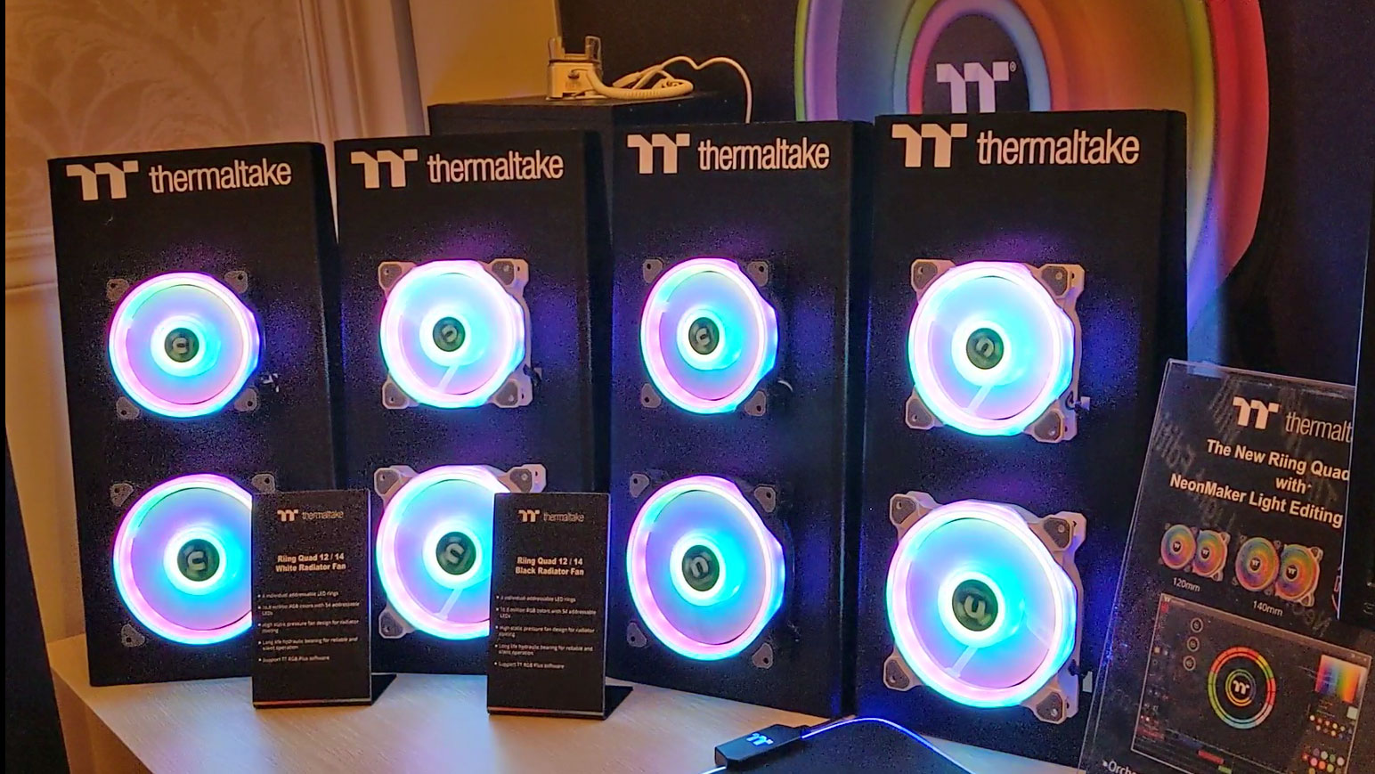 In the application, all the eligible components appear as icons at the top of the screen and you can drag them around to represent their position in the case. The setup in our demo was simply a series of Riing Quad case fans so all the icons were the same, but a Thermaltake rep said that other types of coolers such as AIOs would have icons that looked like the products do in real life.