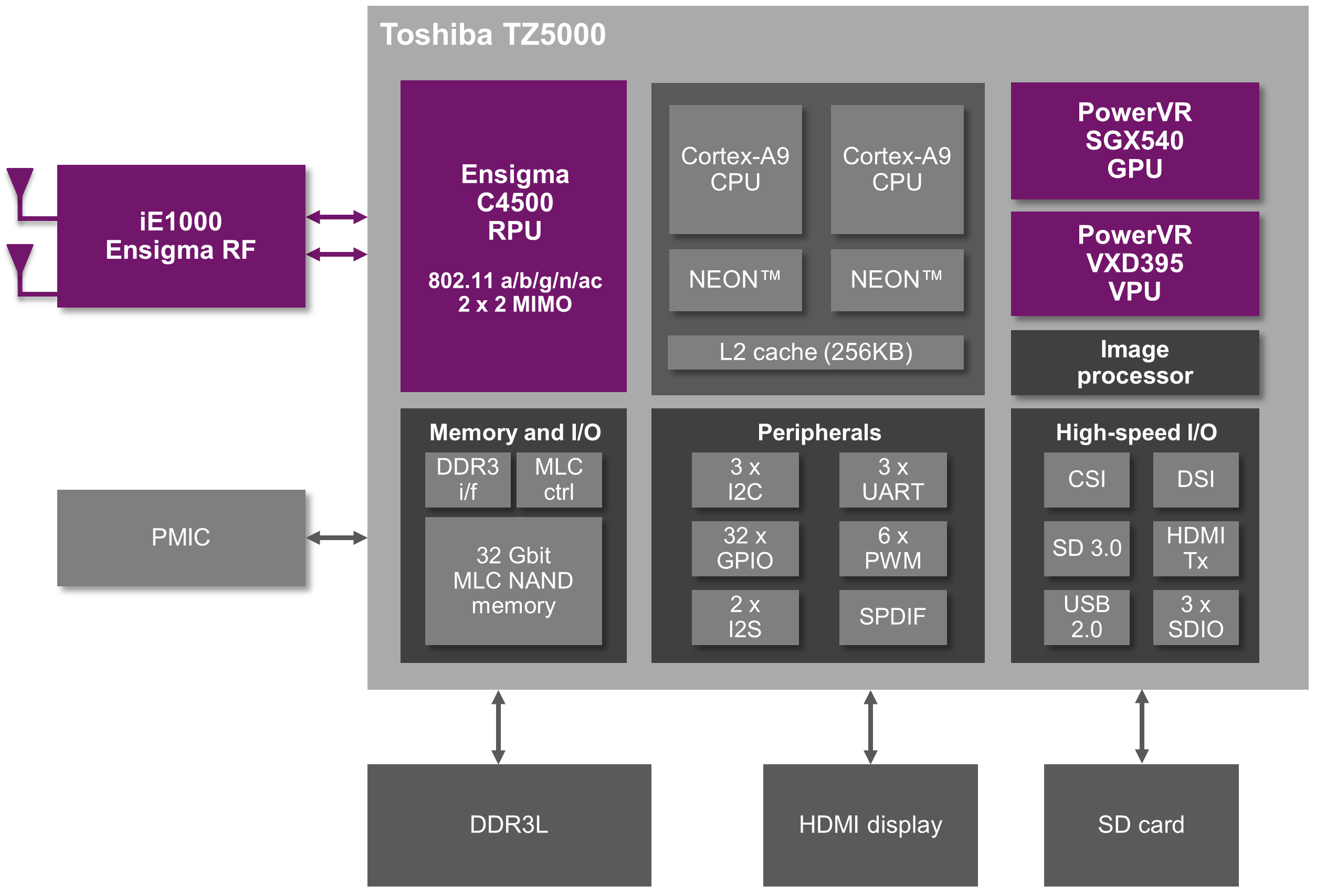 Although the MIPS CPUs haven't quite caught on with mobile chip makers yet due to the near ubiquity of ARM CPUs in that market, Imagination is still a strong player in the mobile GPU market. It also seems to be gaining ground with other SoC components such as radio chips, video accelerators or security engines. Right now, Toshiba seems to be one of Imagination's larger customers for these SoC components, as made evident by the new TZ5000 ApP Lite chips.