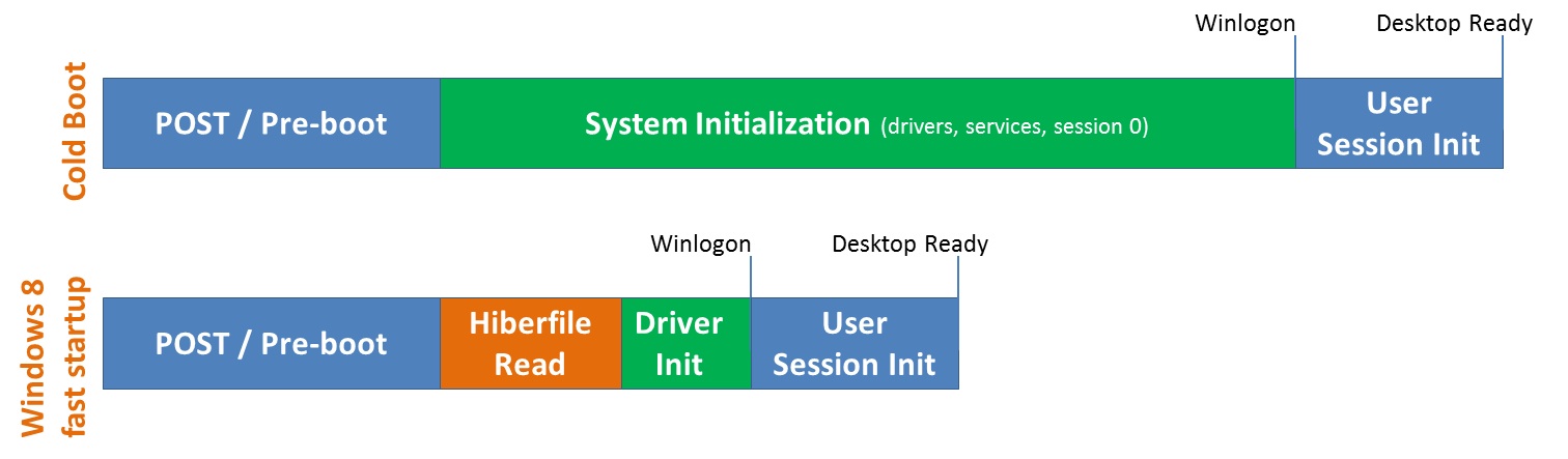 In previous versions of Windows, every boot and shutdown sequence would be a completely fresh start for both the kernel and user sessions. The developers of Windows 8 deem the complete shutdown and reboot of the kernel session every time as unnecessary, so Windows 8 will instead hibernate the kernel session and only shutdown the user sessions.