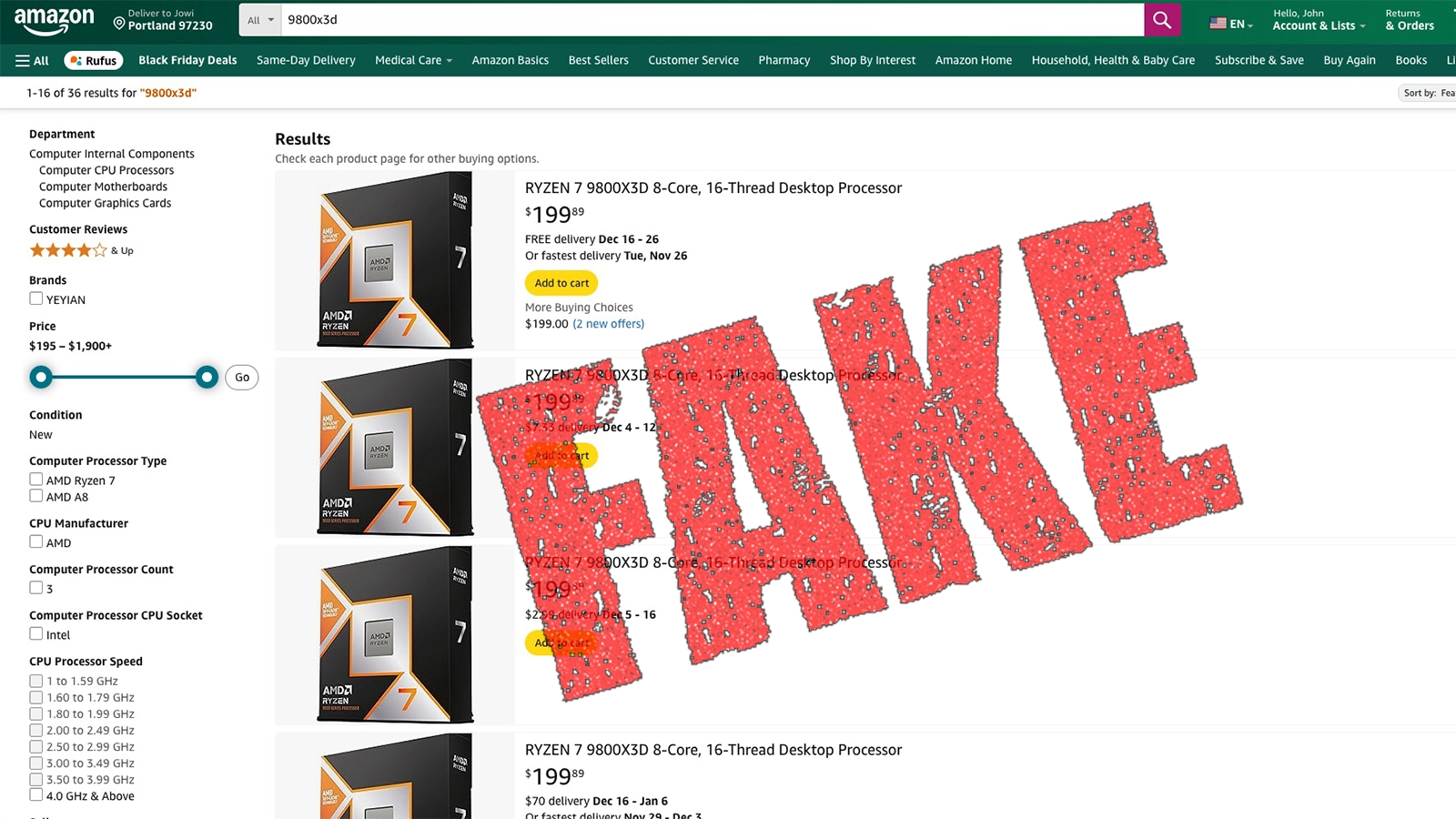 Amazon flooded with fake $199 AMD Ryzen 9 9800X3D listings — searching for AMD’s top gaming chip yields fake results