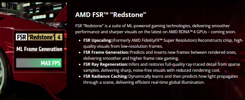 AMD has set a release date of December 10th for FSR Redstone, as we reported earlier. It's not entirely clear that even RDNA 4 gamers should be specifically excited about that date, though; this isn't a driver feature gamers can tick to enjoy immediately. Instead, it's up to game developers to implement support for the new rendering technologies into their games. Admittedly, FSR 4 upscaling can be toggled in the driver to "upgrade" some FSR 3 games to FSR 4 upscaling, but Redstone seems more complex, and we'd be surprised if the same method worked. We won't know for sure until it actually comes out next month.