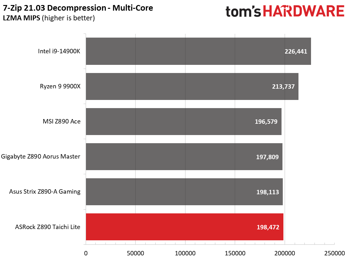 The Z890 Taichi Lite did very well across our benchmarks, often beating the other boards in these tests. Granted, many of the differences aren’t noticeable outside of these charts, but there’s something to be said for being one of the fastest among our data sets.